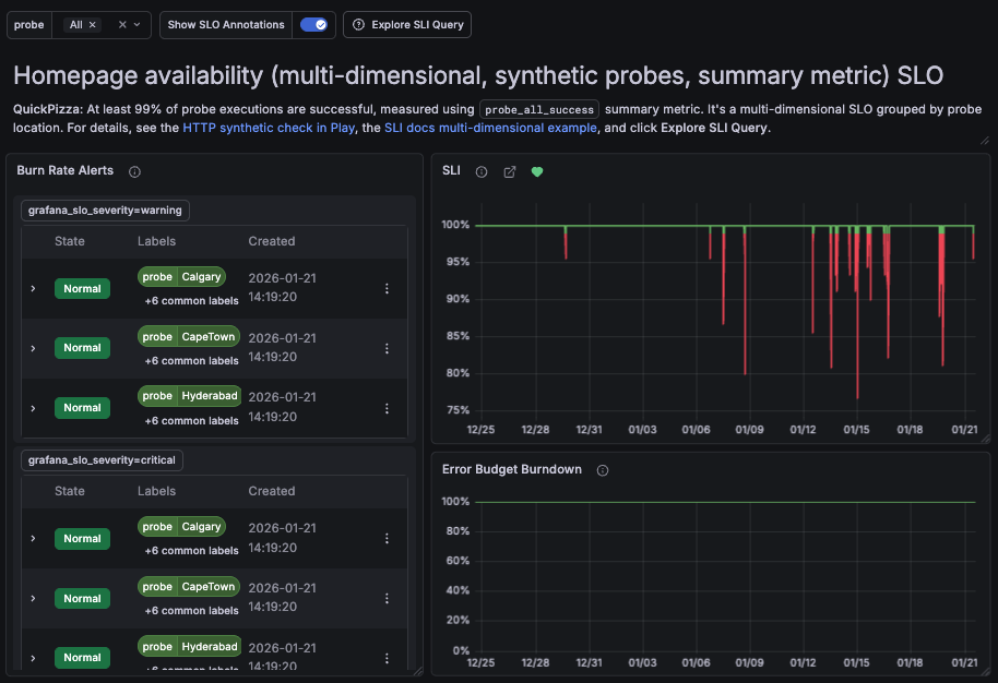 - You need per-dimension alerting (for example, burn-rate alerts per probe).