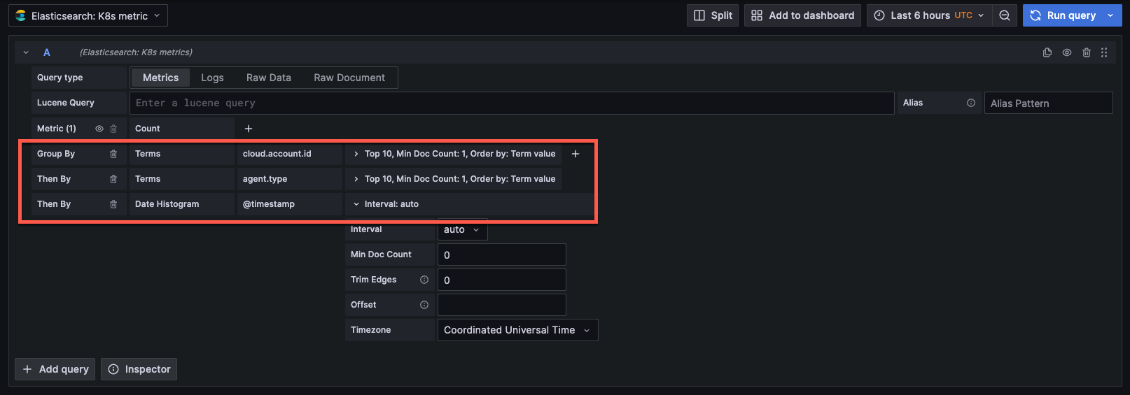 date histogram. This is ignored for any other type of query.Metric - Metrics aggregations include: