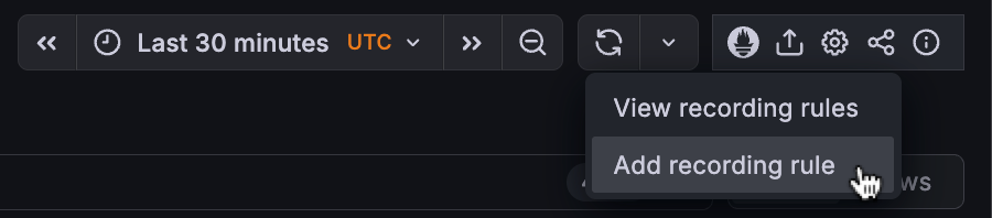 - In the All services view, click the Prometheus icon on the top right corner menu and choose Add recording rule.