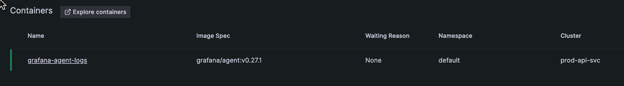 The Pod detail page contains a list of all containers within the Pod. To determine which container might be the issue for this Pod, click on a container in the list to view more detail.
