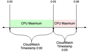 CloudWatch timestamps mark the beginning of a period, not the end.
