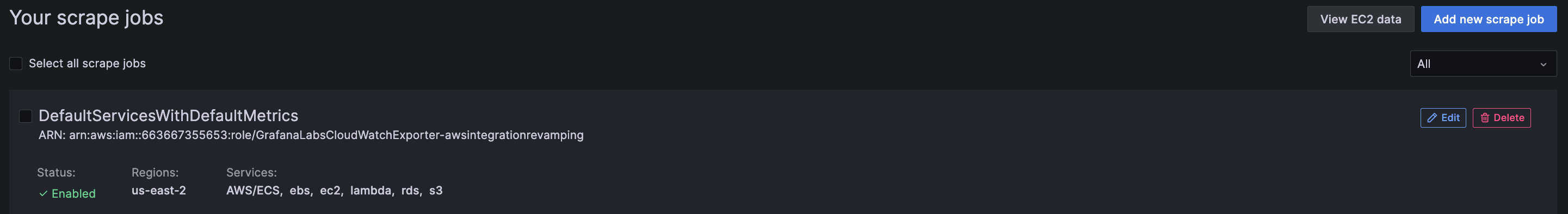 Scrape job - Click the icon next to AWS/EC2 to expand the metrics details.