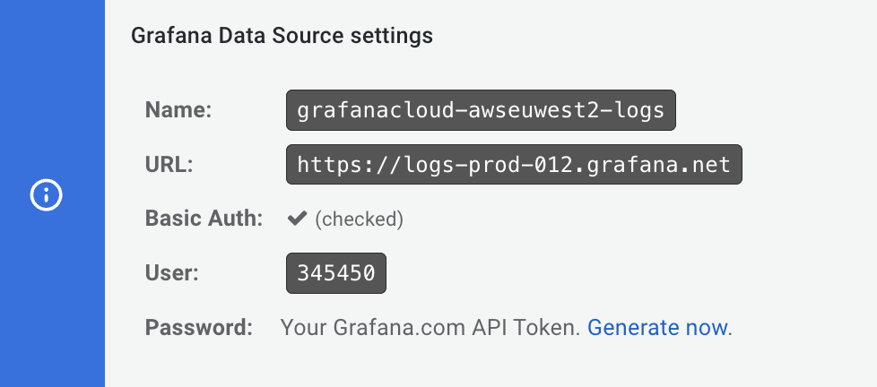 terraform apply, including the required variables as shown in the following example:terraform apply \ -var="fallback_bucket_name=<Name for an s3 bucket, to save data in case of failures>" \ -var="firehose_stream_name=<Kinesis stream name>" \ -var="target_endpoint=<Target AWS Logs endpoint provided by Grafana>" \ -var="logs_instance_id=<Loki User>" \ -var="logs_wfallback_bucket_name: The name of an S3 bucket where logs can be stored in case the delivery failsfirehose_stream_name: Enter a meaningful name for the Data Firehose streamtarget_endpoint: The target endpoint URL for your Grafana Cloud instance. Add the prefixaws-. For example, if your Loki URL ishttps://logs-prod3.grafana.net, then your Logs with Firehose URL will behttps://aws-logs-prod3.grafana.net/aws-logs/api/v1/push.logs_instance_id: The numeric value for User field of the Loki data sourcelogs_write_token: The token you created for Data Firehose