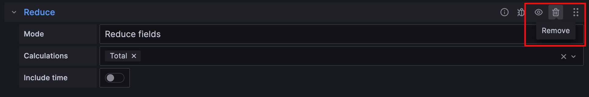 - Reduce fields - Keeps the existing frame structure, but collapses each field into a single value.