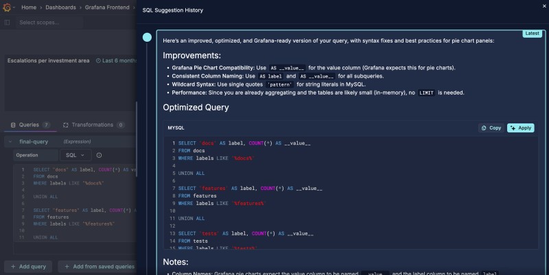 Grafana SQL Expressions, Grafana’s solution for manipulating and transforming the results of data source queries using SQL (MySQL dialect) syntax, is now available in Public Preview.