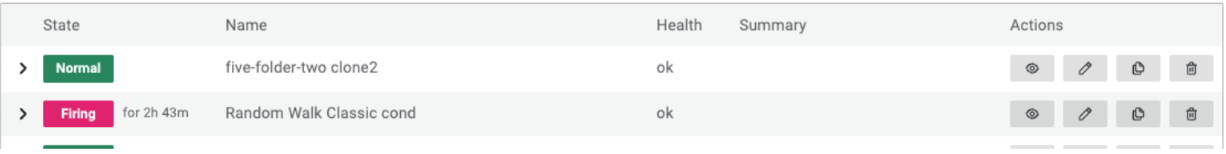 To help you reuse existing alert rules or templates, make copies of alert rules from the Alert rule list view and templates from the Contact points page.
