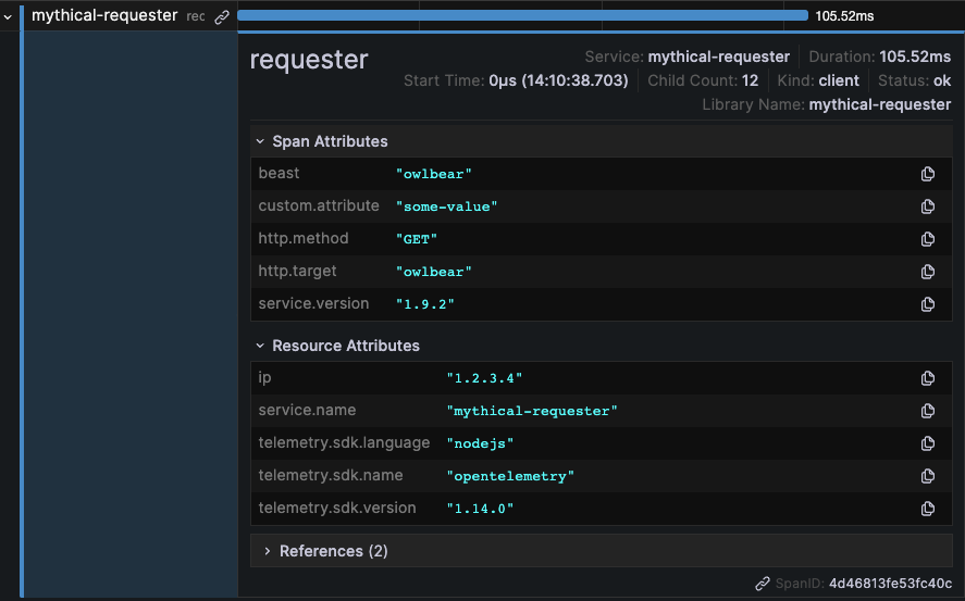 - Tags: Any tags associated with this span.