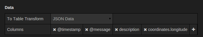 Above you see the options tab for the Table Panel. The most important option is the To Table Transform. This option controls how the result of the metric/data query is turned into a table.