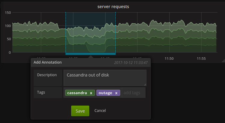 You can now add annotation events and regions right from the graph panel! Just hold Ctrl/Cmd+Click or drag region to open the Add Annotation view. The Annotations documentation is updated to include details on this new exciting feature.