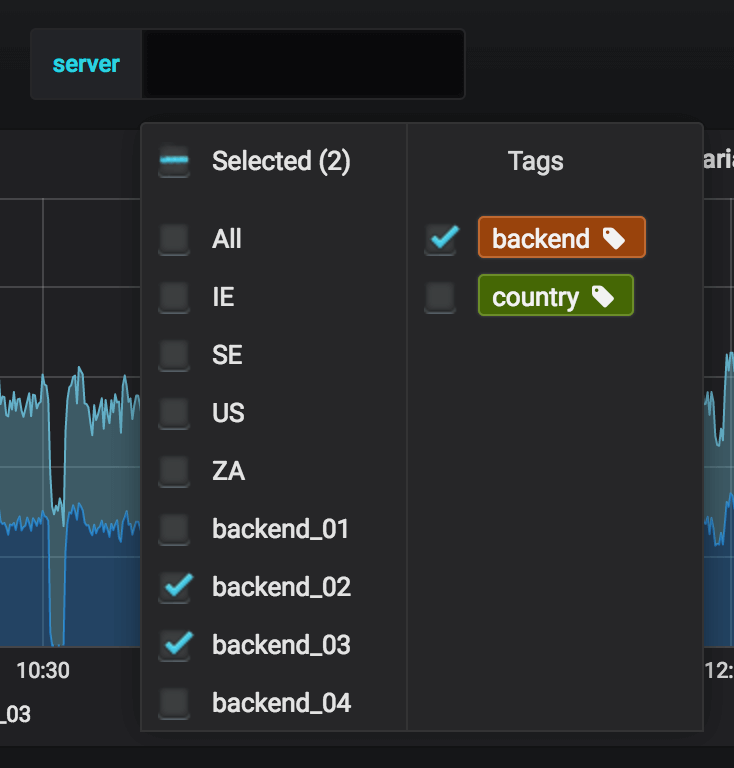 Variables allows for more interactive and dynamic dashboards. Instead of hard-coding things like server, application and sensor name in your metric queries you can use variables in their place. Variables are shown as dropdown select boxes at the top of the dashboard. These dropdowns make it easy to change the data being displayed in your dashboard.