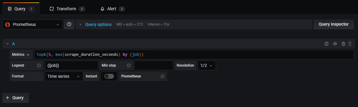 Min interval - Sets a minimum limit for the automatically calculated interval, typically the minimum scrape interval. If a data point is saved every 15 seconds, then there’s no point in having an interval lower than that. Another use case is to set it to a higher minimum than the scrape interval to get more coarse-grained, well-functioning queries.