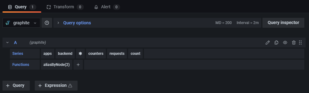 The section contains tabs where you enter queries, transform your data, and create alert rules (if applicable).
