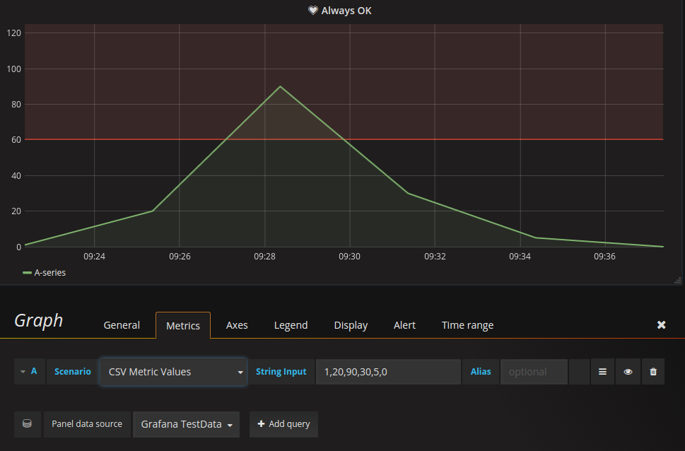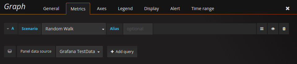 Once TestData DB is enabled, you can use it as a data source in any metric panel.
