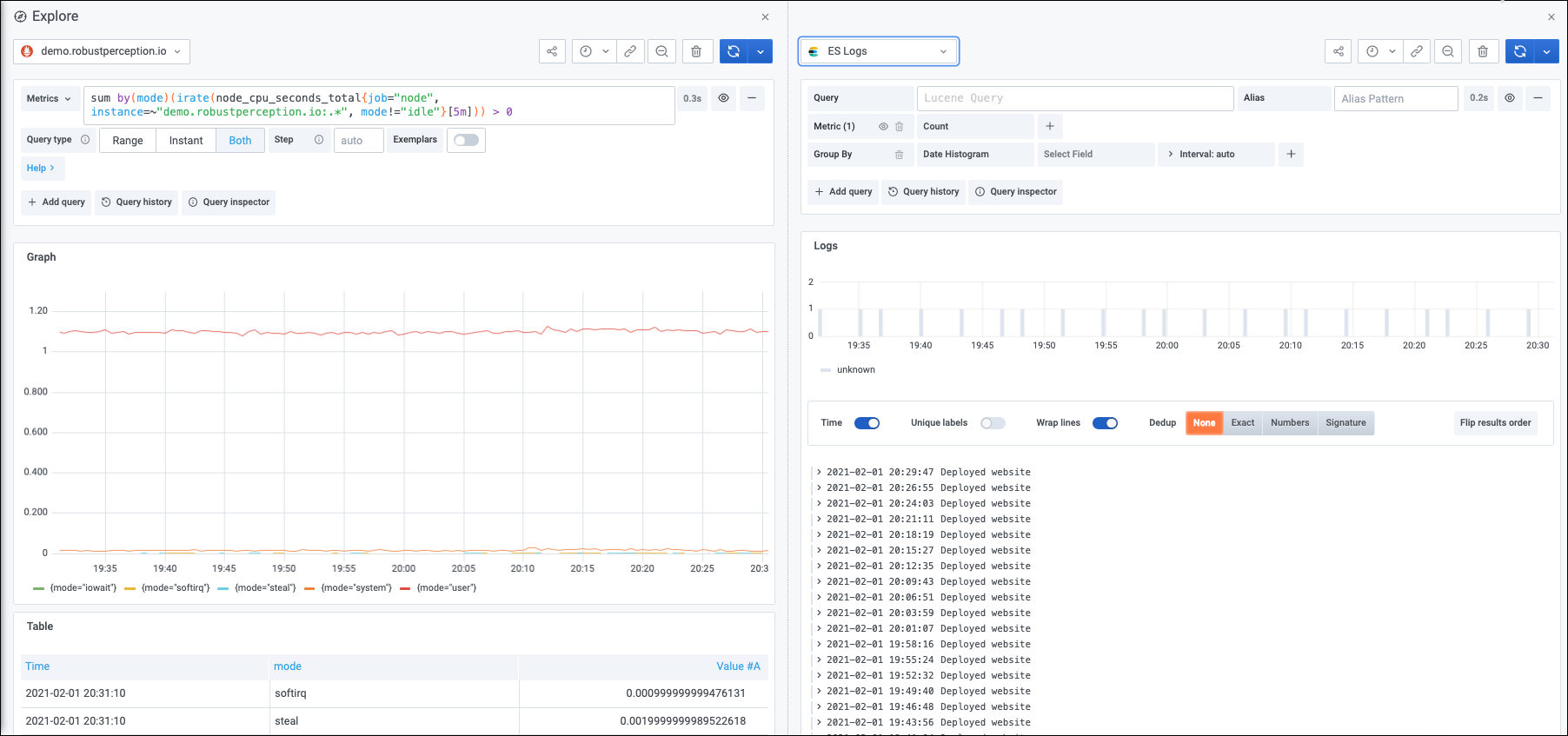 If you just want to explore your data and do not want to create a dashboard, then Explore makes this much easier. If your data source supports graph and table data, then Explore shows the results both as a graph and a table. This allows you to see trends in the data and more details at the same time. See also: