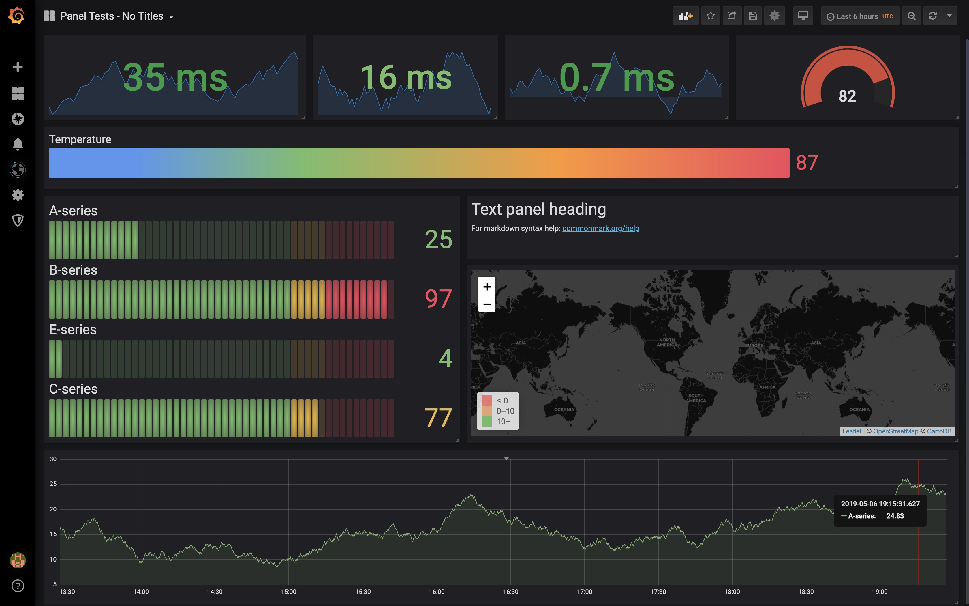 Grafana v6.2 ships with a new exciting panel! This new panel, named Bar Gauge, is very similar to the current Gauge panel and shares almost all it’s options. The main difference is that the Bar Gauge uses both horizontal and vertical space much better and can be more efficiently stacked both vertically and horizontally. The Bar Gauge also comes with 3 unique display modes, Basic, Gradient, and Retro LED. Read the preview article to learn more about the design and features of this new panel.