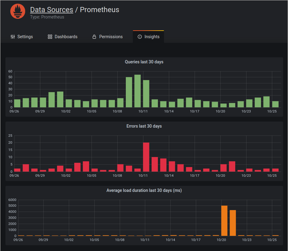 Data source insights give you information about how a data source has been used in the past 30 days, such as: