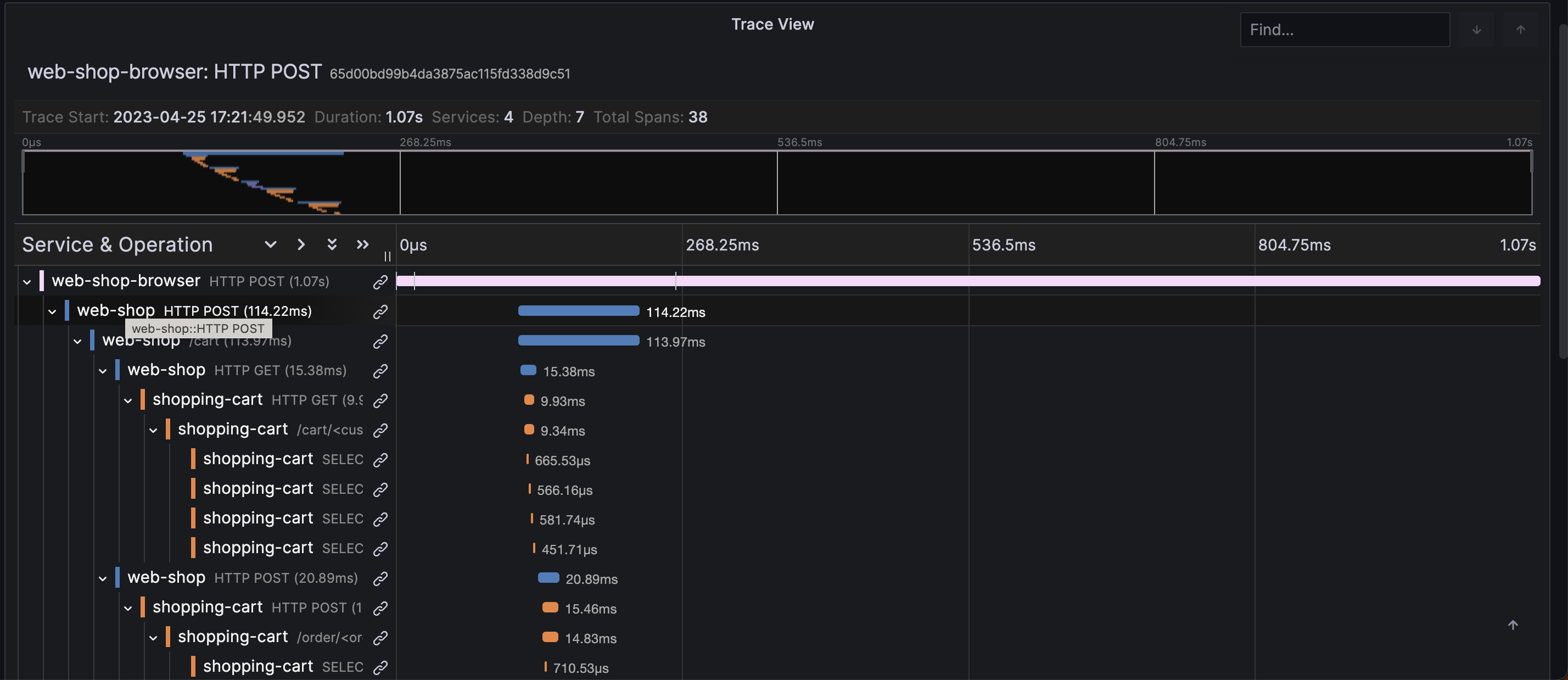 Traces visualizations let you follow a request as it traverses the services in your infrastructure.