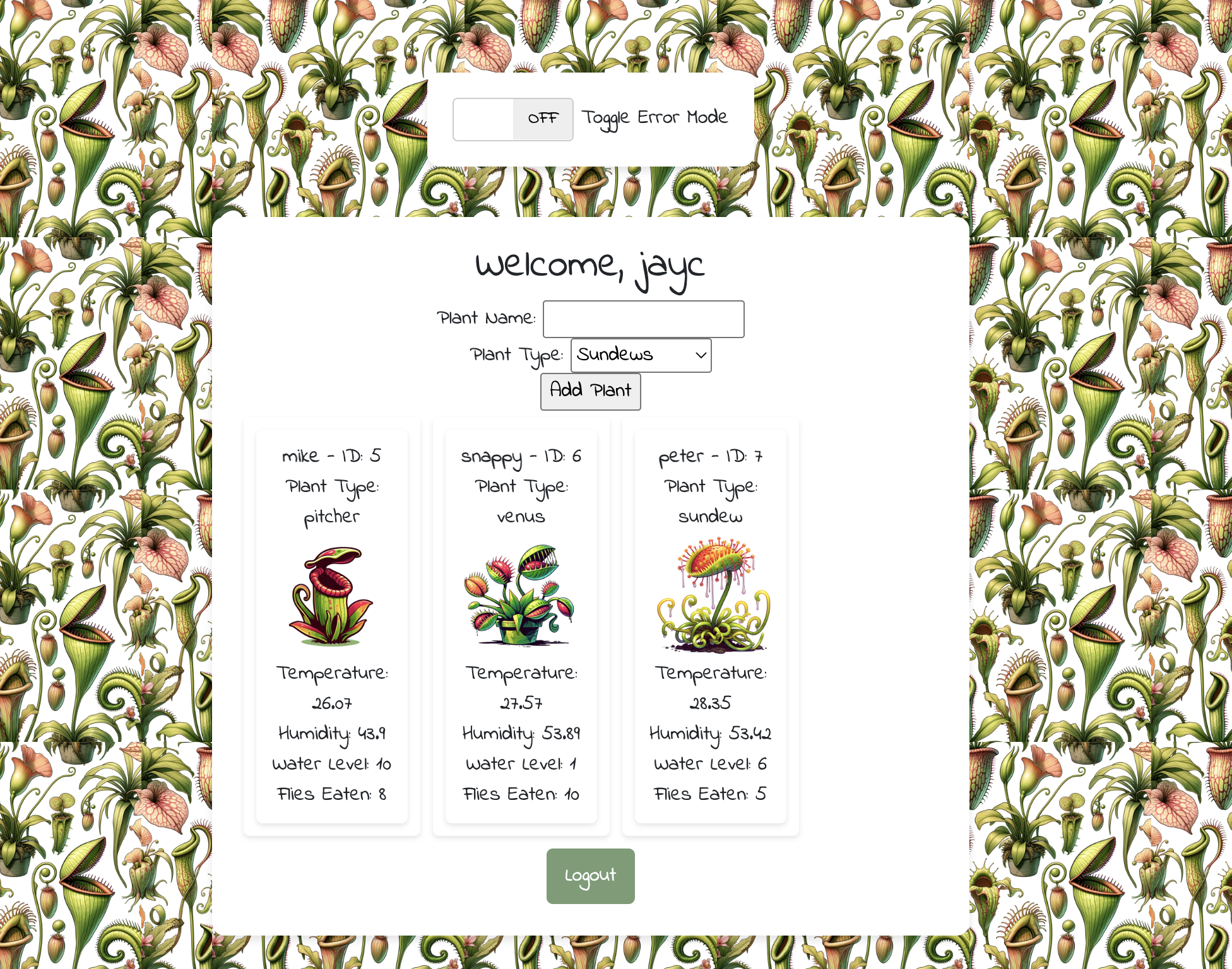 3. Create a plant: Once logged in, give your plant a name, select a plant type and click Add Plant. Do this a few times if you like.