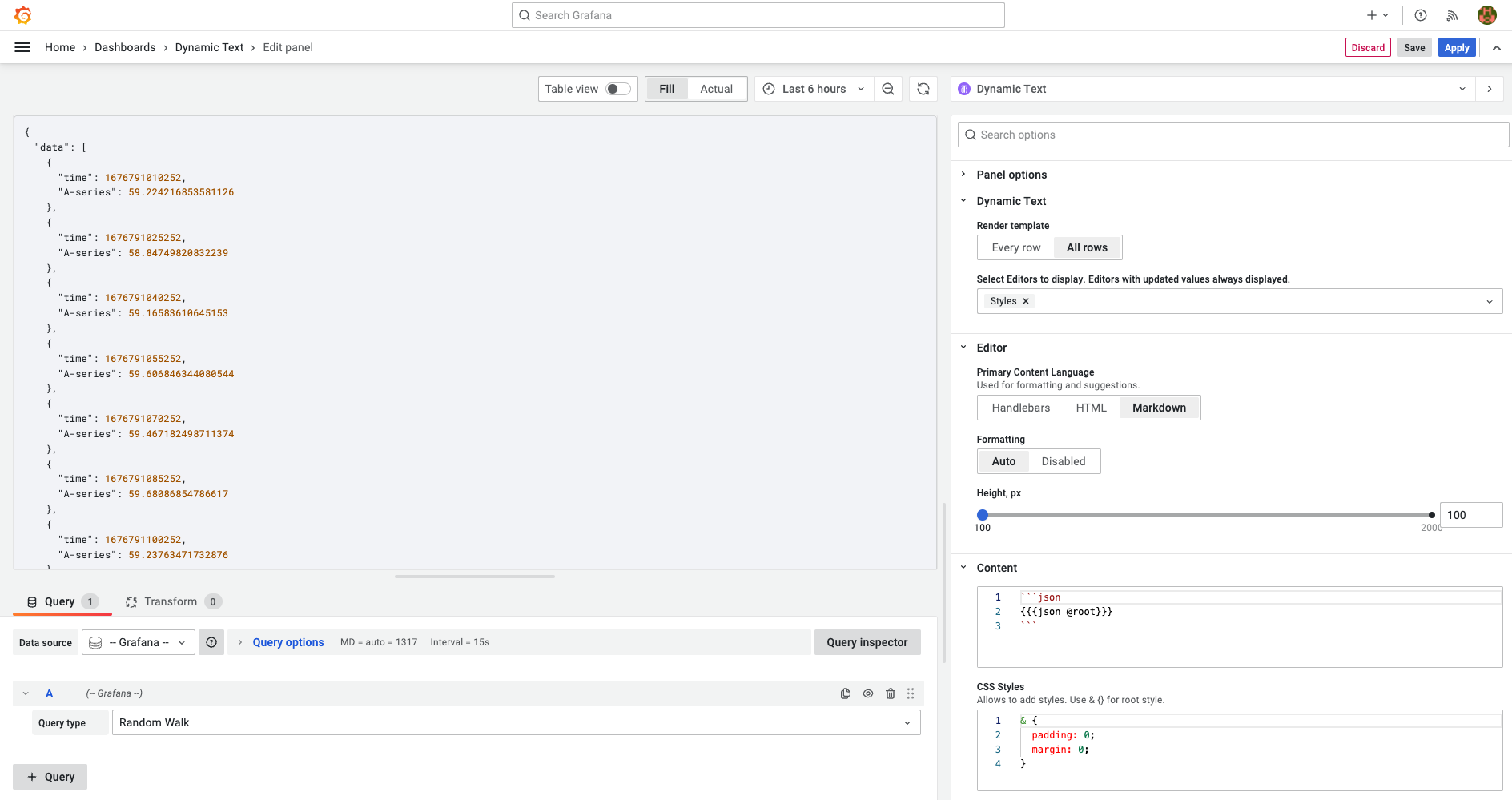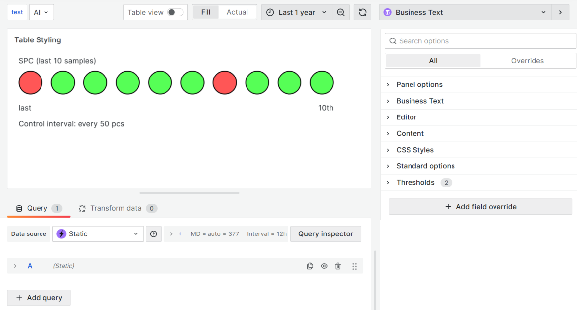 The Business Text panel supports dashboard variables starting from version 3.0.0 and dashboard variables in CSS styles starting from version 4.0.0.
