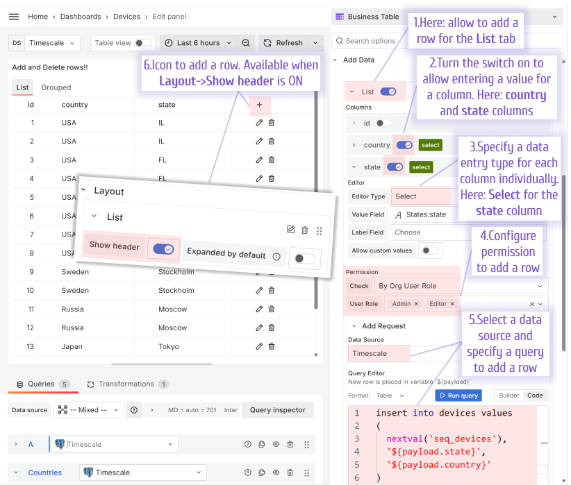 - Permission, which provides granular control over who can add a new row.