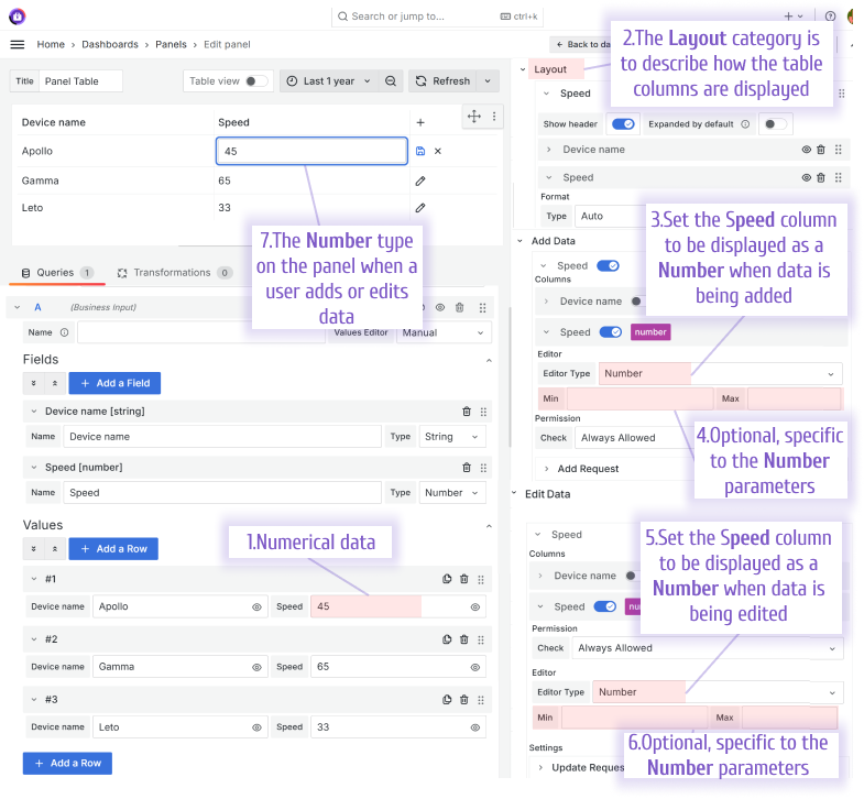 The Number type lets you enter a numerical value. Optionally, you can specify the Min and Max for allowed values.