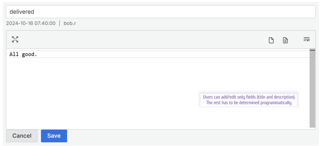 Note that you can add or edit only two fields (title and description) in the current feature design.