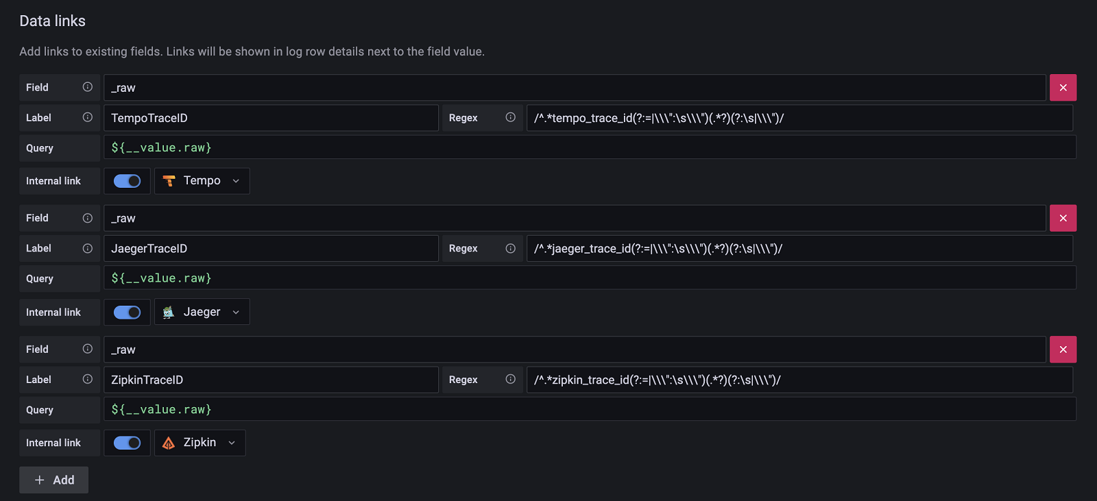 - #210: Link from logs to traces using data links or derived fields