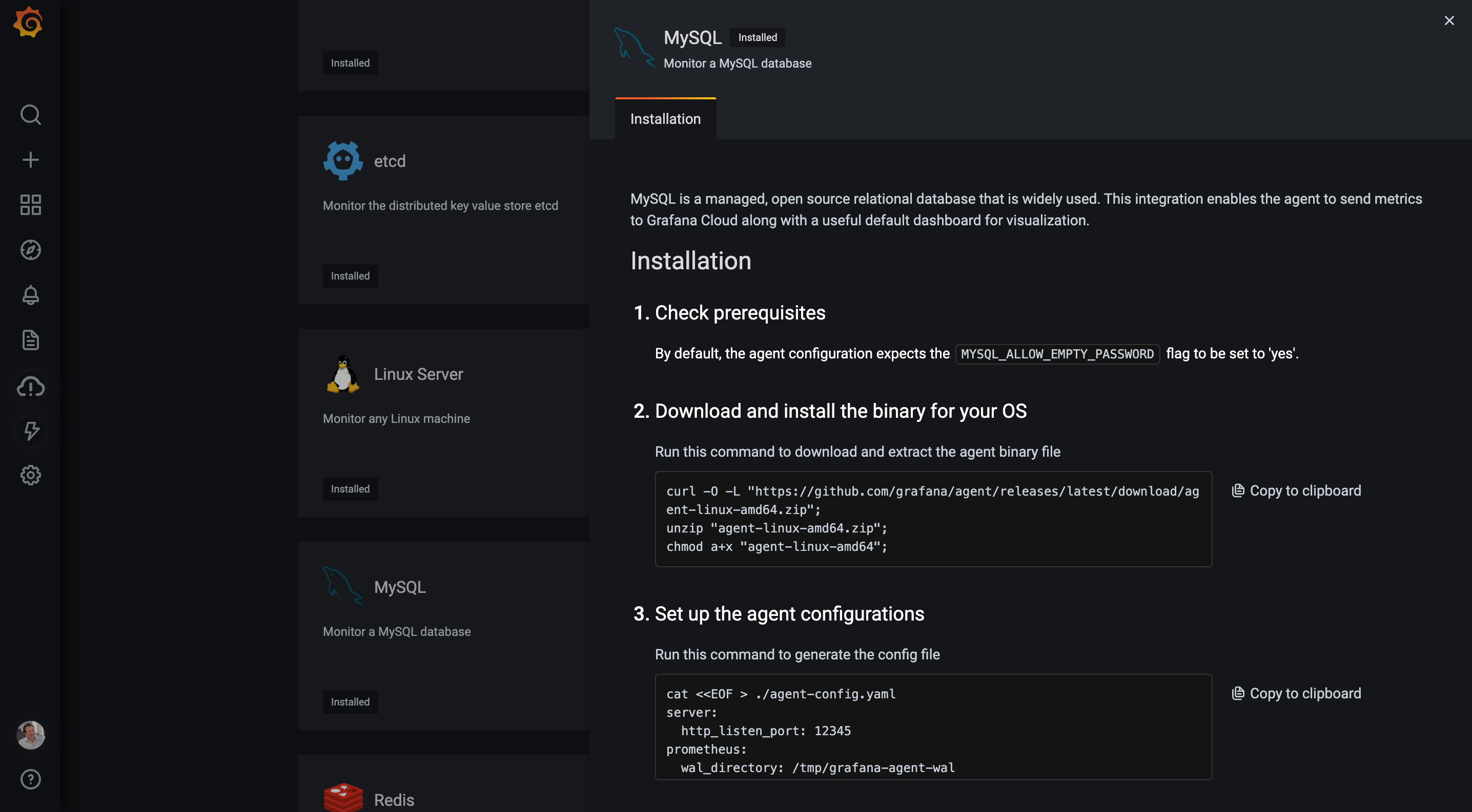 Grafana Cloud comes with an ever-expanding set of pre-built integrations to get the most out of these technologies quickly and easily. Start monitoring popular infrastructure components such as MySQL, Postgres, Redis, or Memcache with just a few clicks. Choose from preconfigured dashboards and alerts, and use our comprehensive agents to gather important metrics, logs, and traces in one place.
