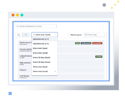 Dashboard search Sort dashboards to find unused, broken, and most-viewed dashboards |