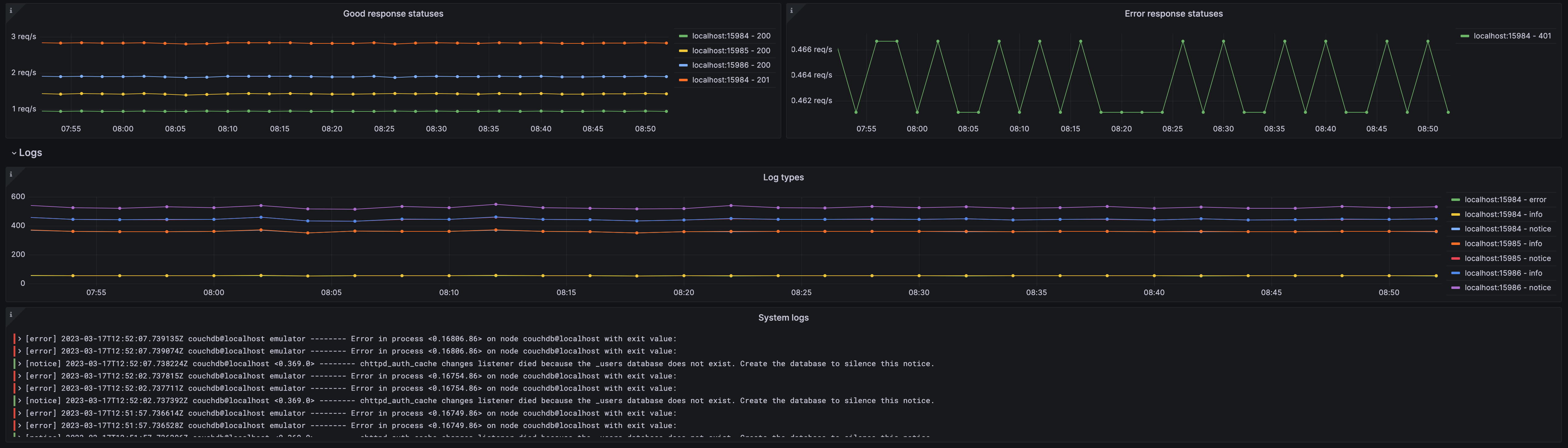 Easily monitor Apache CouchDB, a NoSQL document-oriented database system known for its scalability, availability, and easy replication of data across multiple servers, with Grafana Cloud’s out-of-the-box monitoring solution. The Grafana Cloud forever free tier includes 3 users and up to 10k metrics series to support your monitoring needs.