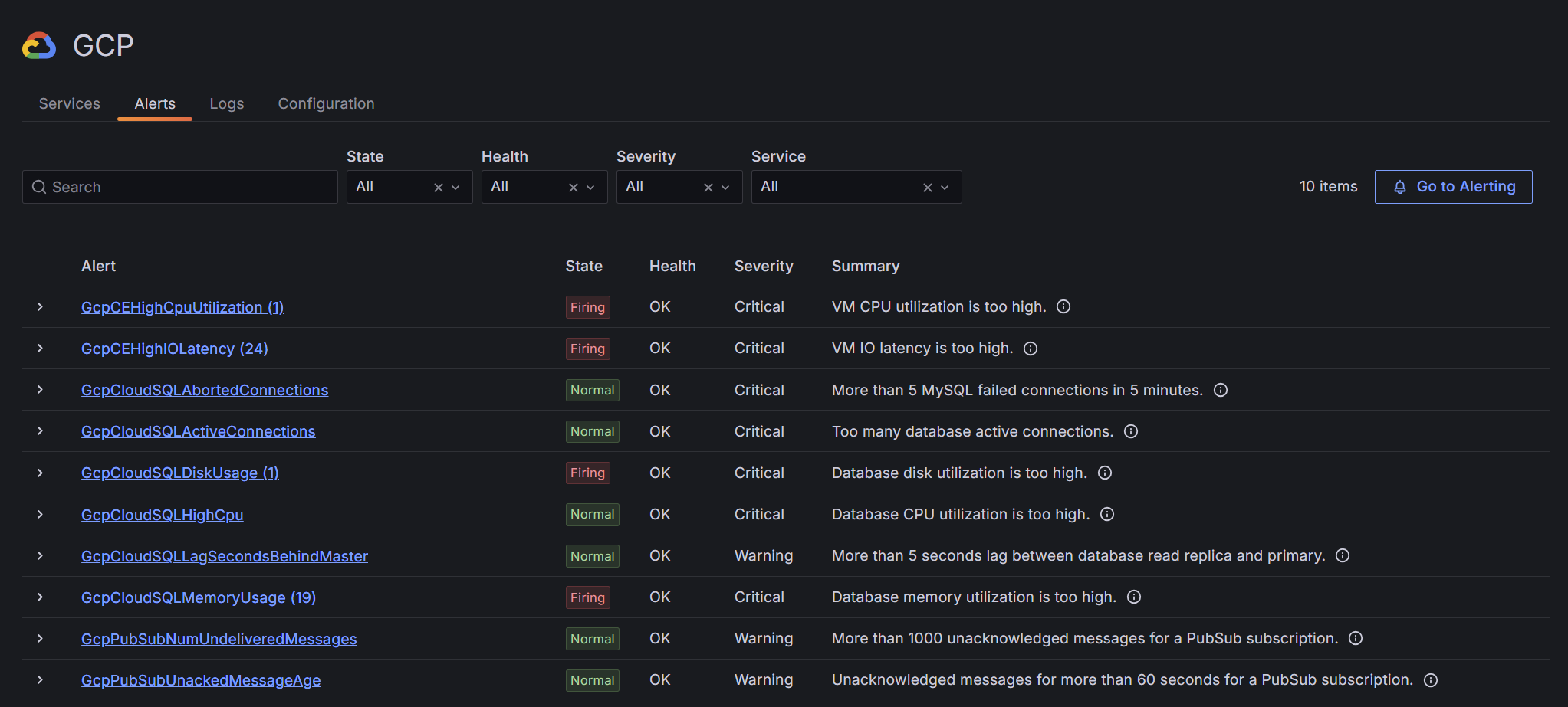 • Foundational set of alerts following Google Cloud best practices for health and performance