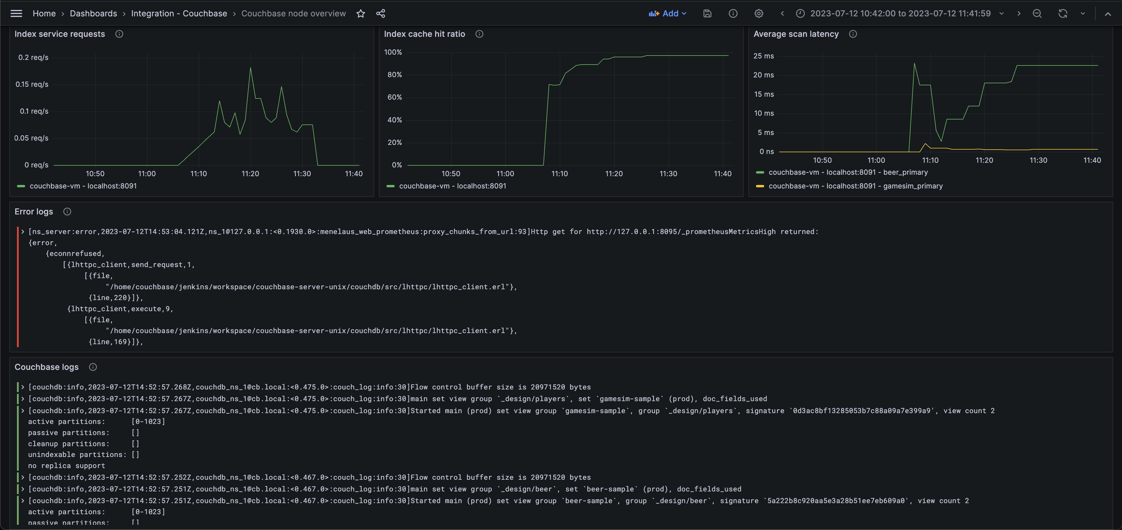 Couchbase node overview (logs)