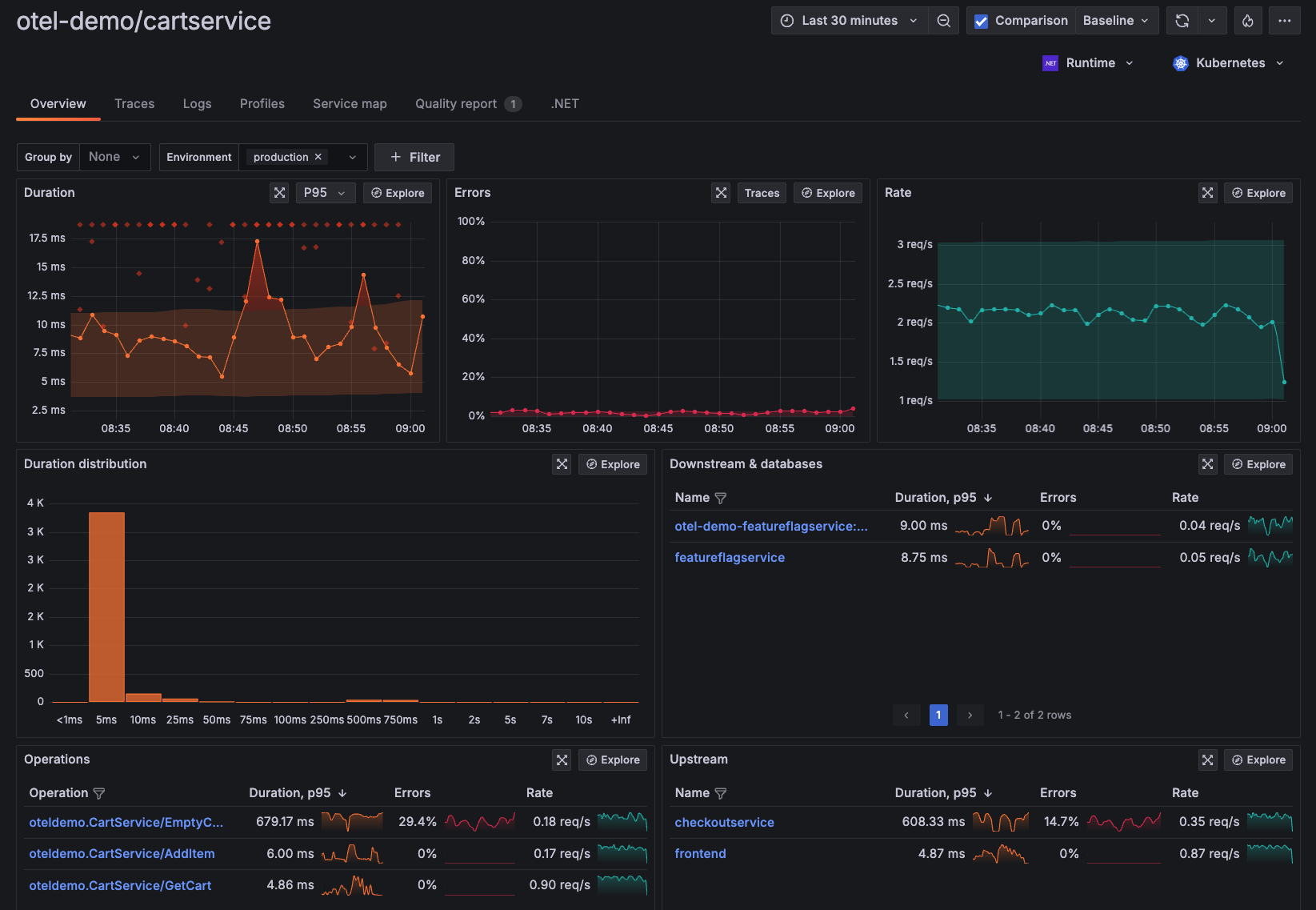 - Lock-in free instrumentation with OpenTelemetry to collect metrics, traces and logs.