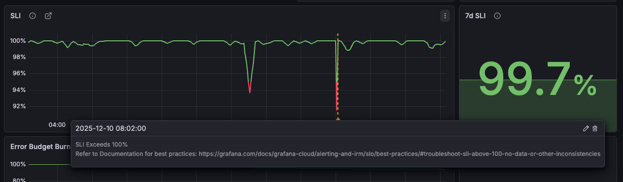 When users see SLI graphs spike above 100%, it can lead to confusion and concerns about whether the SLO or SLO plugin is functioning correctly.