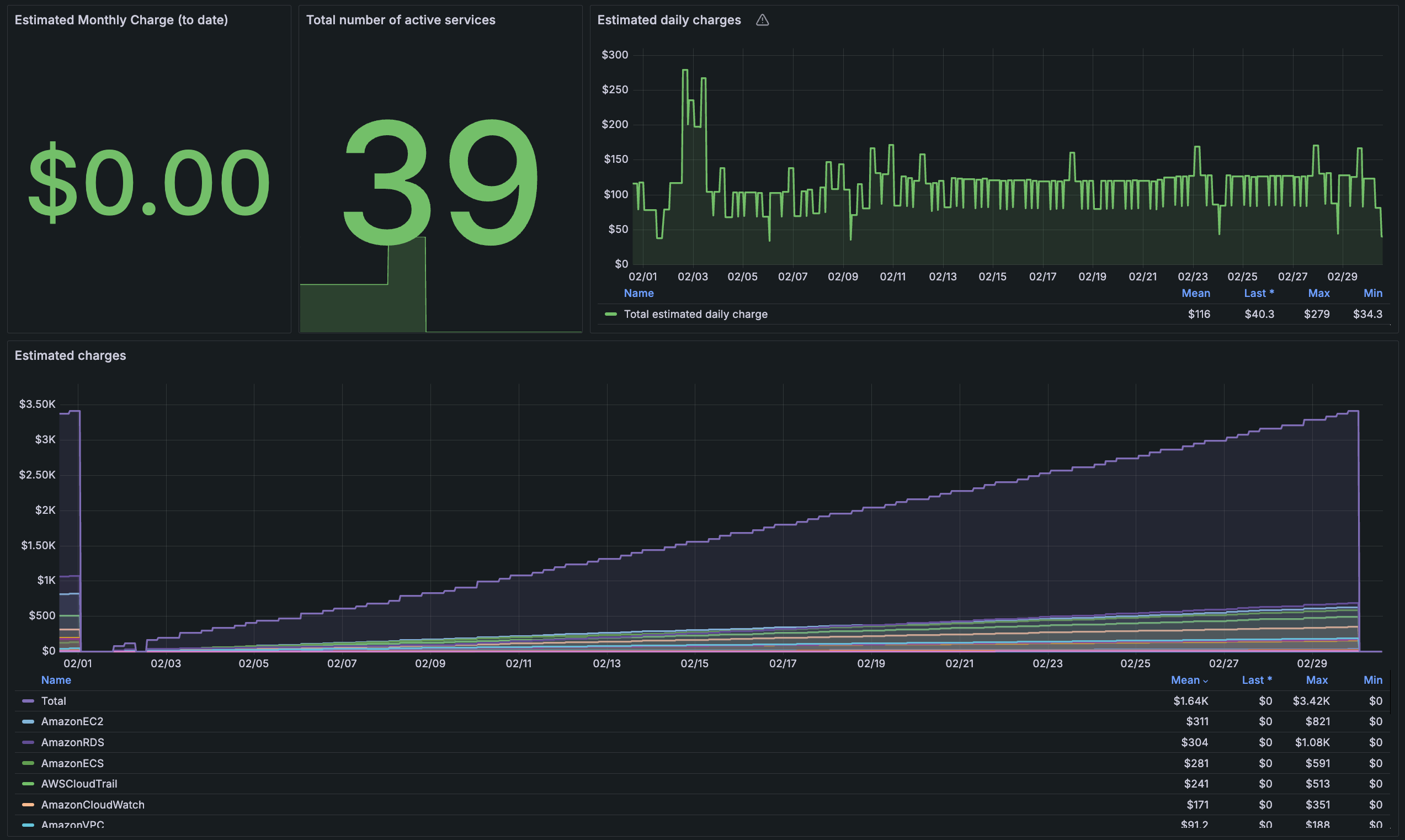 You can easily access dashboards to monitor AWS costs and cloud services. For example, the following shows the billing dashboard.