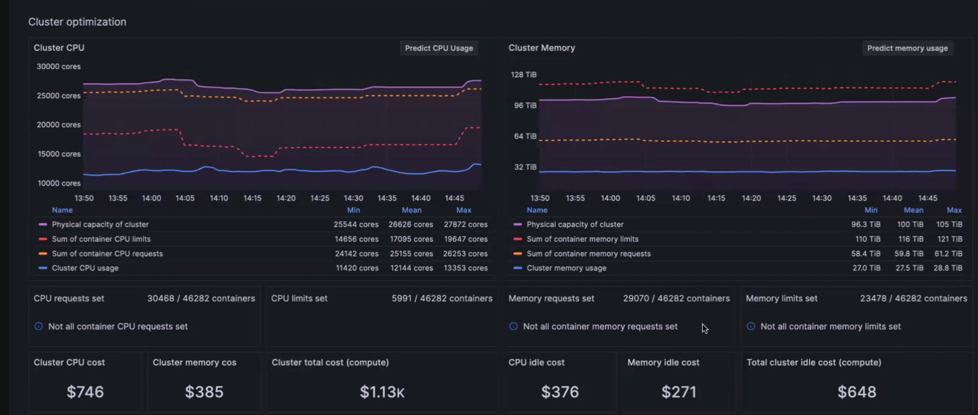 Cost monitoring and investigation and troubleshooting of CPU and memory usage are now easier for both Clusters and Nodes. Go to the optimization panels for the Cluster and Node detail pages to view the CPU and memory utilization, as well as cost information.