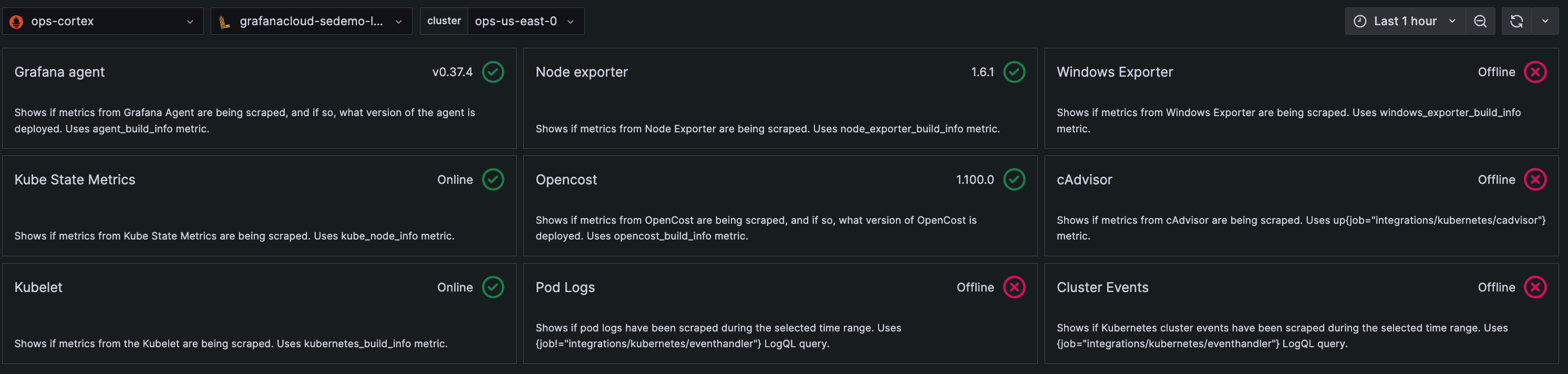 The Metrics status tab, which shows the configuration status of Kubernetes Monitoring components, is updated for better usability and quicker comprehension.