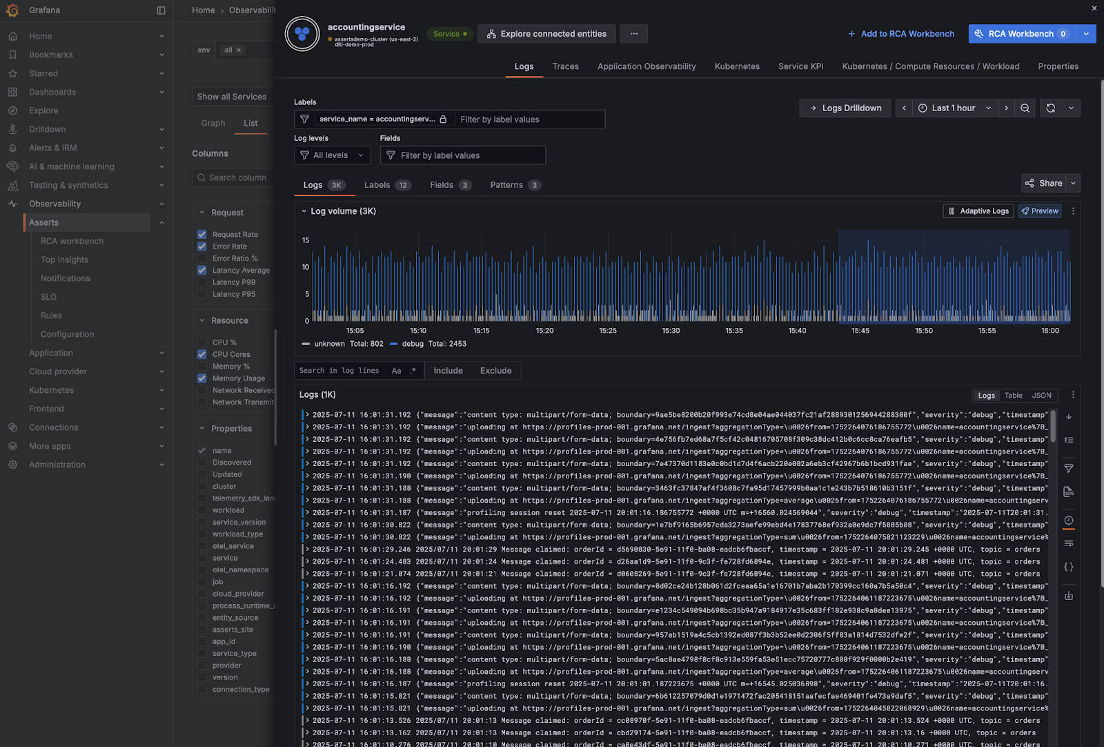 We are announcing the availability of embedded Logs Drilldown within Asserts. This is our second milestone, coming hot off the heels of launching the embedded version of Traces Drilldown in Asserts.